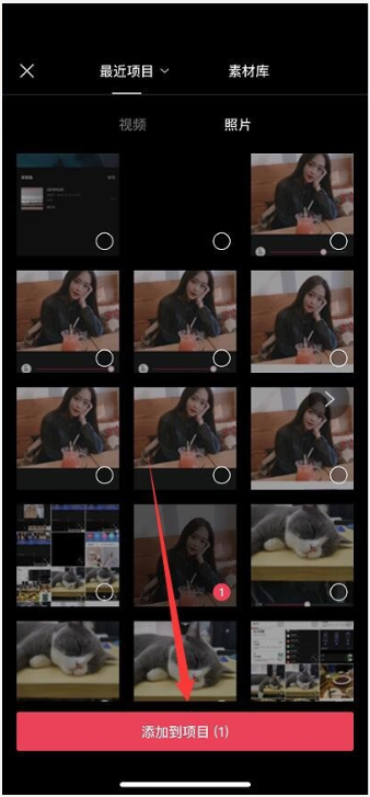 打开手机相册,选择一个视频素材,点击【添加到项目】,进入视频剪辑窗口,