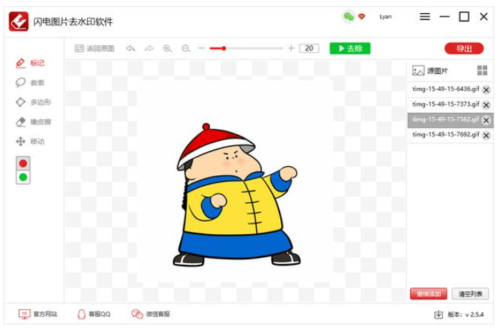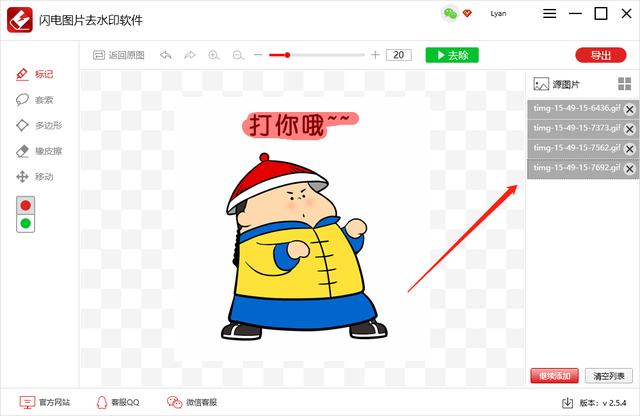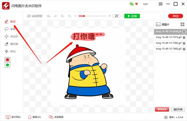前几天,小编介绍了今天说说制作GIF动图表情包的方法,现在有小伙伴询问,从网上找到了一些GIF图片,想要删除原有文字进行二次编辑,应该这么做呢?很简单,小编推荐闪电图片去水印软件,它可以轻松消除GIF动图的文字水印,操作如下。