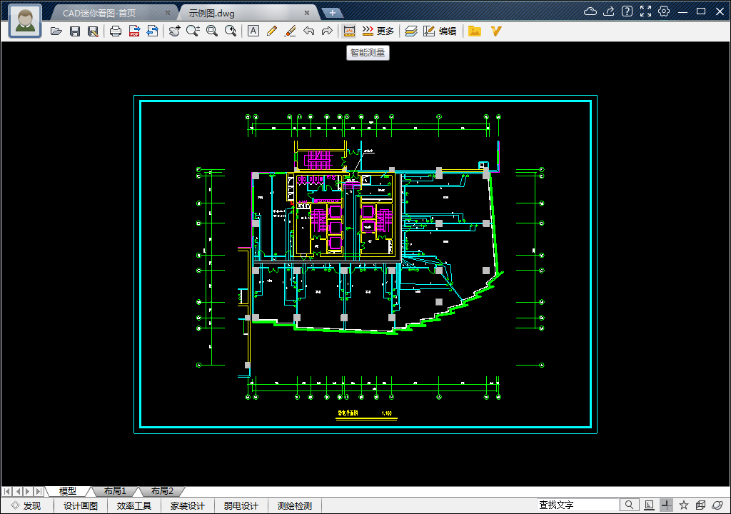 CAD迷你看图软件是一款小巧实用的CAD快速看图软件。相对于CAD系列画图软件,它侧重于CAD图纸的查看转化,由于删除了制图功能,它的安装文件仅为20M,大大方便了用户的安装使用。接下来的教程会对CAD迷你看图软件进行逐一讲解,今天首先来介绍在CAD迷你看图软件中如何测量图形长度和面积。