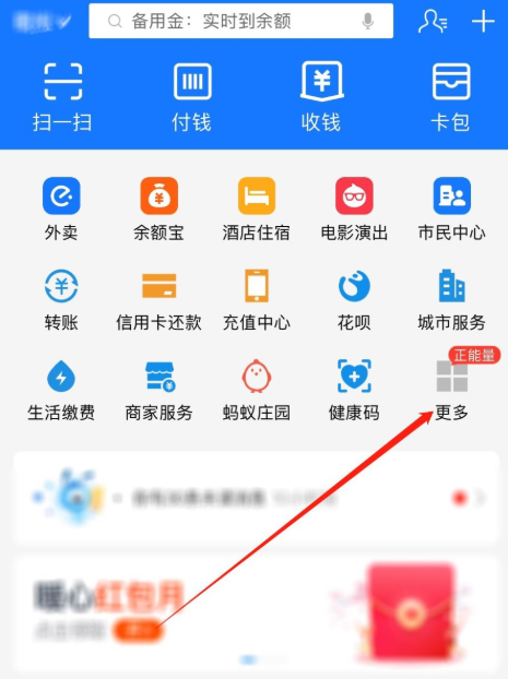 在手机中打开支付宝,进入首页,如图,点击【更多】选项,