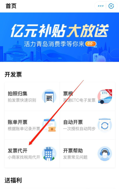 进入以下界面,点击【开发票】——【发票代开】功能,