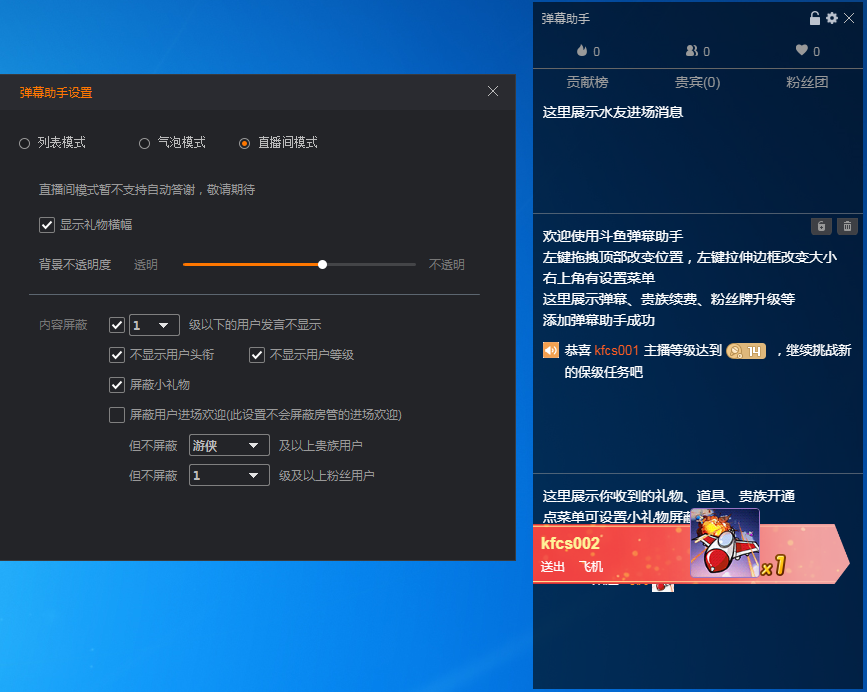 3、直播间模式,这个模式和网页端直播间弹幕类似。