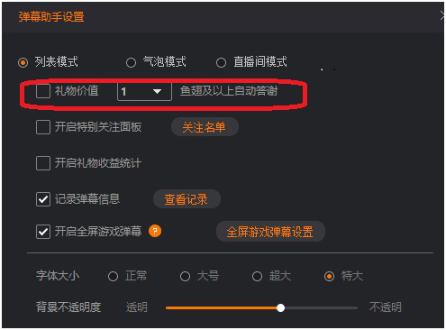 1、自动答谢:勾选“礼物”,设置在“价值”文本框设置礼物可以开启自动答谢功能,需要注意的是直播间模式暂不支持该功能。