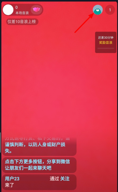 点击【开始视频直播】,进入直播间,如图,直播页面,点击右上角的在线观众图标,