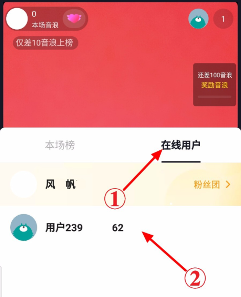 弹出面板,点击【在线用户】,展开列表,找到需要设为管理员的用户,点击用户名,