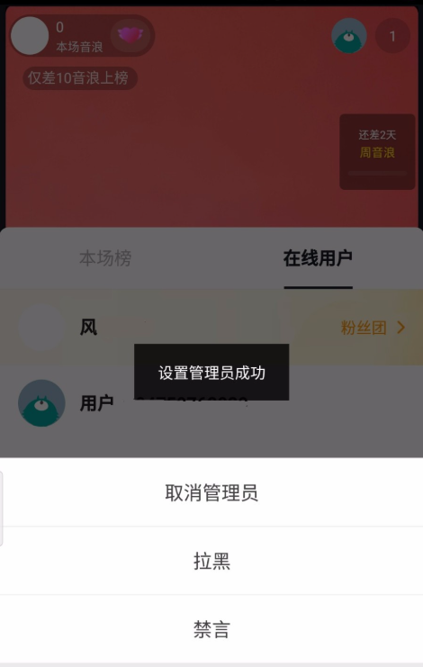 设置管理员成功,他可以帮助处理琐碎的事情,包括拉票、场控等等。