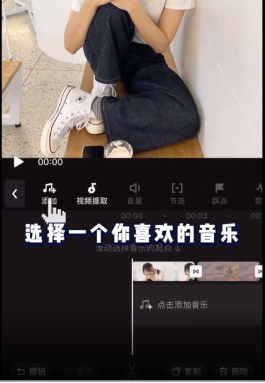 5、选择音乐轨中的音乐,点击编辑栏中的【踩点】。