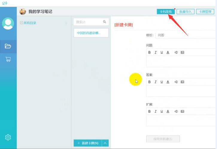 自己在记乎里制作卡片的时候,要先根据自己的需要来选择卡片的类型,它分为问答题等四个不同的类型。做好卡片内容后,要记得点击卡包发布,这样才能同步到手机端的记乎,方便自己随时随地学习。