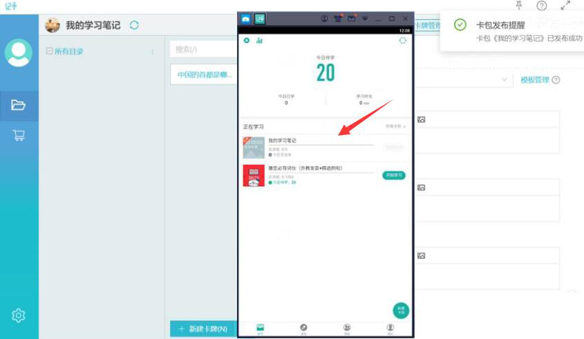 8、最后,用户点击自己用记乎制作的卡片便可以自动下载,点击“开始学习”便能学习自己的卡片内容了。