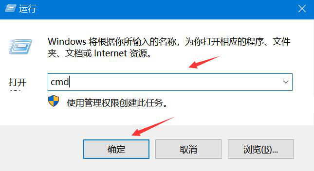 3、接下来,利用快捷键“win+R”打开运行窗口,输入“cmd”,点击确定,进入命令行。