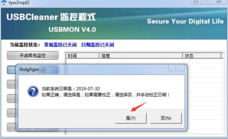 3、然后,点击USBMON的“开启日期监控”按钮,在弹出的窗口提示中点击“是”的按钮。
