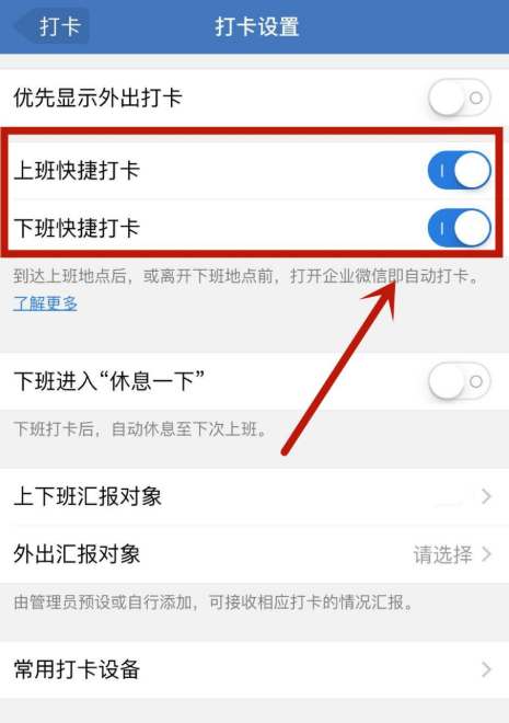 企业微信如何设置上下班快捷打卡?