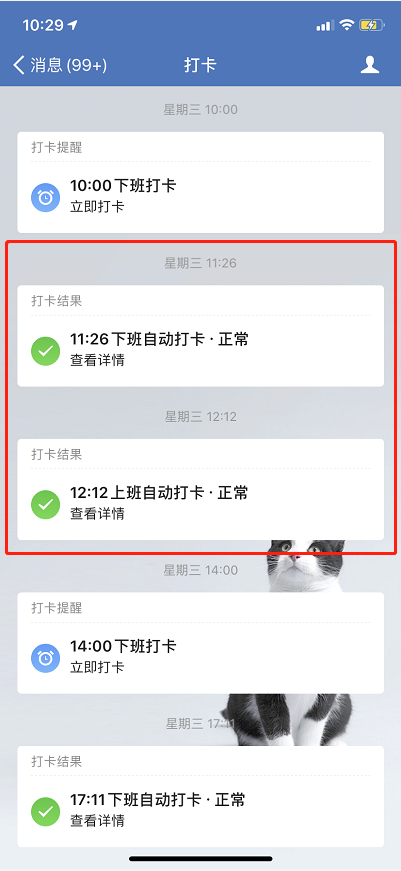 设置完毕,当你去到打卡地点,启动企业微信,即可触发自动打卡,自动打卡之后会推送通知信息。