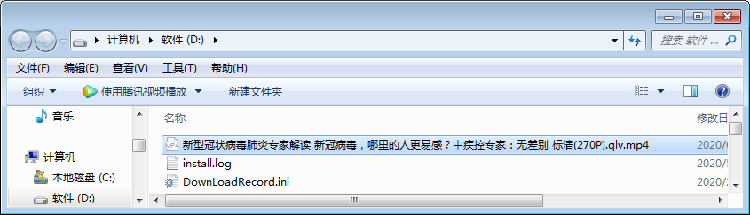 1、打开腾讯视频客户端,随便下载一个视频,打开下载文件夹,可以看到下载的视频格式为qlv。