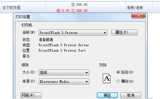3、弹出打印设置窗口,选择要打印票据的打印机名称,其他选项一般默认,最后点击【确定】,即可开始打印。