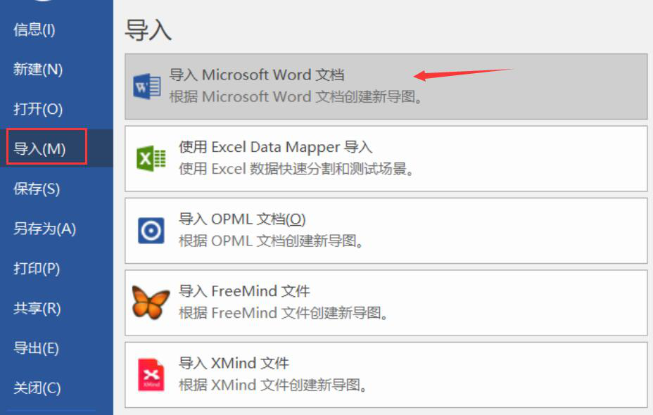 5、当其他用户修改完成后,用户就可以使用MindManager的导入功能,将经过修改的Word文件导入进来,从而了解他人的意见。