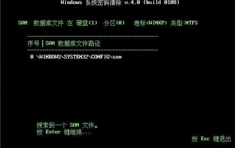 5、windows开始自动搜索直到找到一个名为“SAM”文件,然后根据提示按回车键。