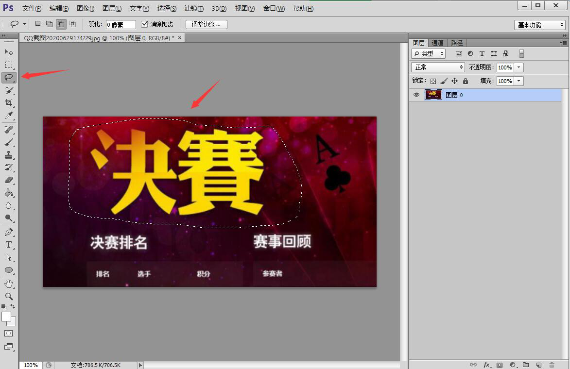 2、然后,在PS工具栏中调用套索工具,用套索工具大体勾勒出复杂背景中的杂物范围。