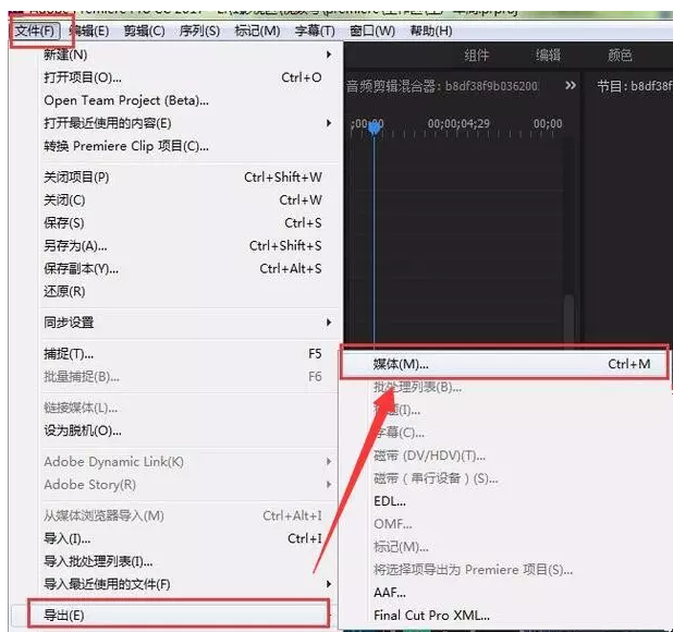 处理结束,导出视频,如图,在菜单栏中点击【文件】——【导出】——【媒体】,进行导出设置,即可保存视频。