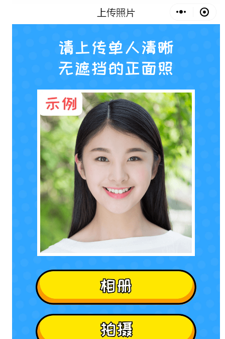 上传单人清晰正面照,你可以点击【相册】进行选择,或者点击【拍摄】,当场拍照,