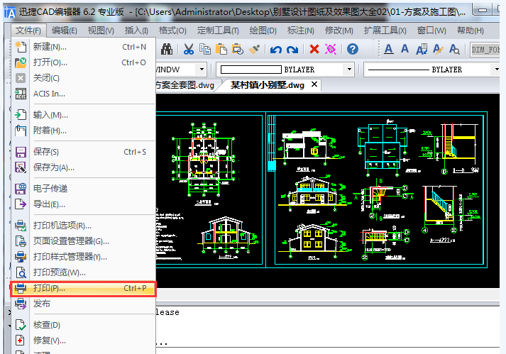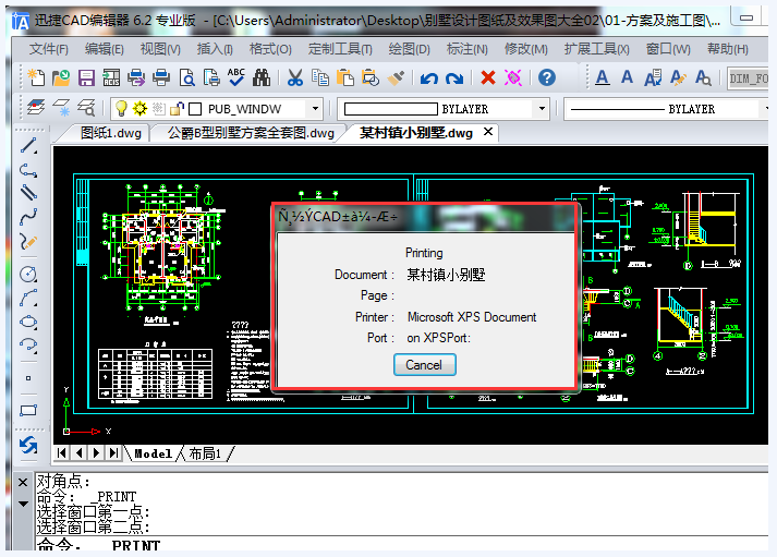 打开迅捷CAD编辑器专业版,导入CAD图纸,在菜单栏中点击【文件】——【打印】命令,即可弹出【打印-Model】窗口,
