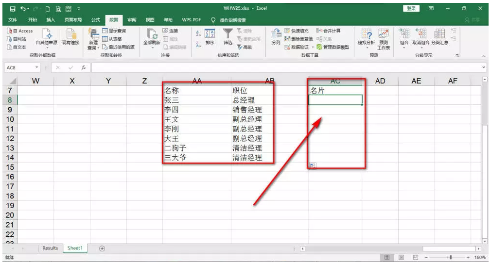 打开一个Excel工作簿,如图,我需要利用表格中的数据来制作个名片,简单来说,就是合并单元格内容,