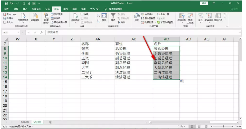 再次使用快速填充命令,即可成功提取数据,最终效果如图。