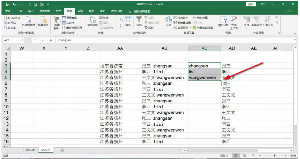 当然了,由于数据存在特殊性,我们在使用快速填充命令的时候可能会出现错误,下面简单举例说明。