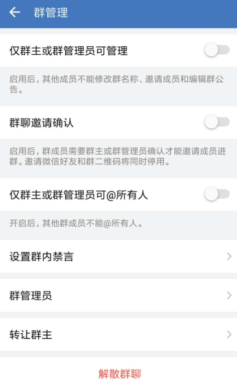 进入聊天信息界面,找到【群管理】选项,点击它,