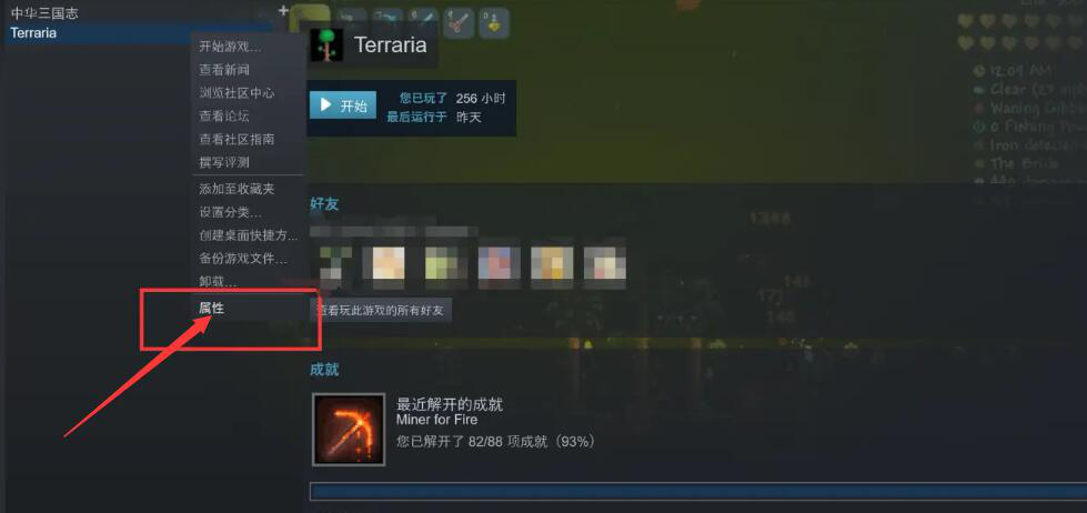 2、找到出现闪退的游戏,右键菜单中点击“属性”。