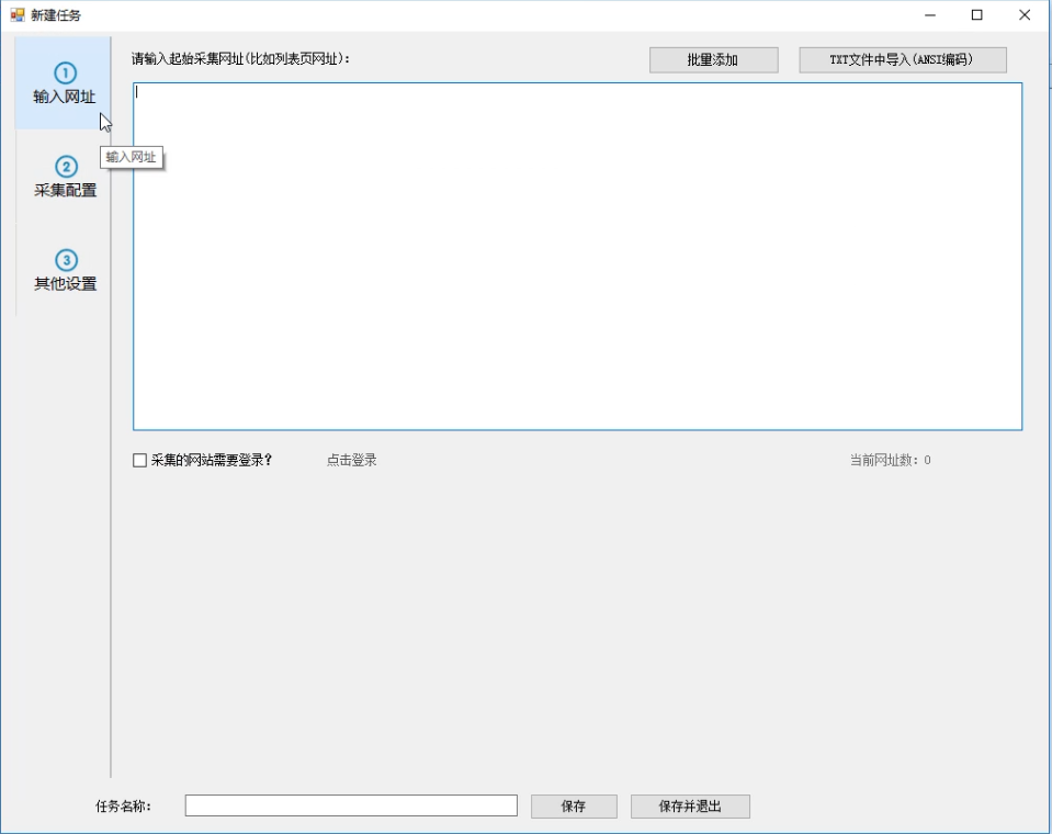 2、弹出新建任务窗口,在【输入网址】右侧空白处粘贴要采集的网页网址。