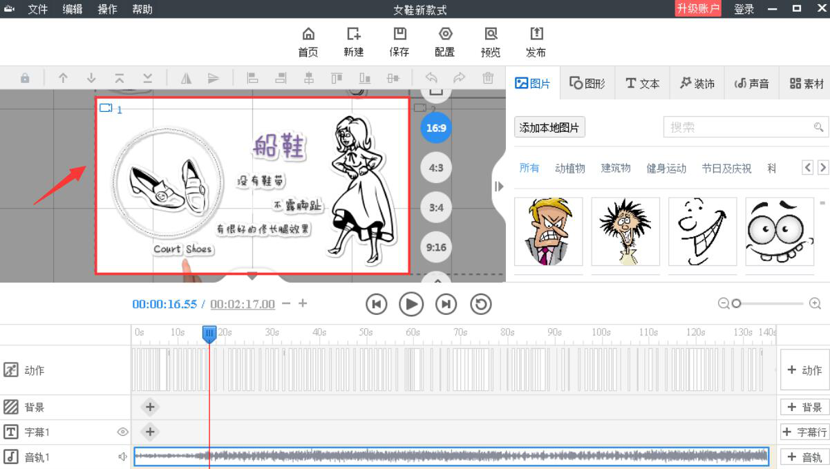 2、万彩手影大师便会弹出新建项目的操作界面。用户可以在该模板的基础上选中需要修改的元素来具体修改,修改完成后保存作品。