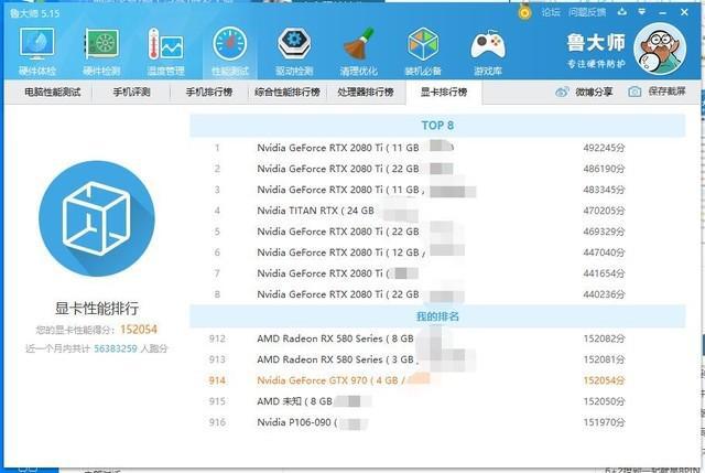 鲁大师,这是大家熟悉的一款系统优化软件,只要用过的人都会有印象。鲁大师集成了硬件检测、性能测试、清理优化、驱动更新等功能,值得一提的是,在电脑性能测试过程中会有一个排行榜,让你知道自己电脑中的硬件是否上榜。当然了,对比FurMark和3DMark,鲁大师检测得出的跑分数据不是很准确,这一点需要注意。