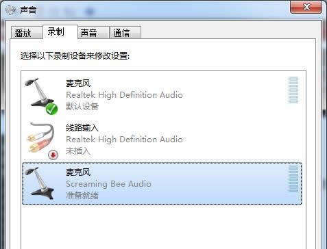 当然,如果你不在系统如此设置,也是可以的。在系统中把录音设备设为“Screaming Bee Audio”,可以让MorphVox的变声效果覆盖系统全局。