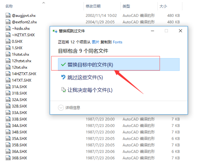将刚才解压的CAD字体全部复制粘贴到这里,遇到重复的直接替换,CAD字体添加完成,现在重新打开AutoCAD软件,导入图纸,即可完整浏览图纸信息。