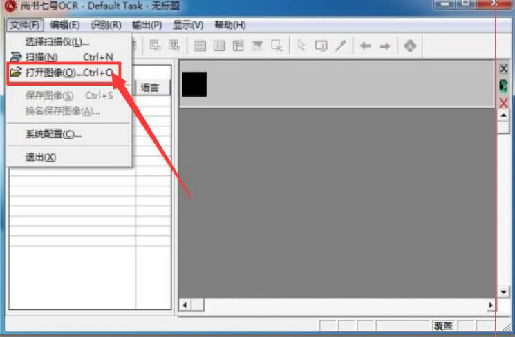 1、首先,用户打开安装好的尚书七号OCR软件,点击“文件”菜单中的“打开图像”。