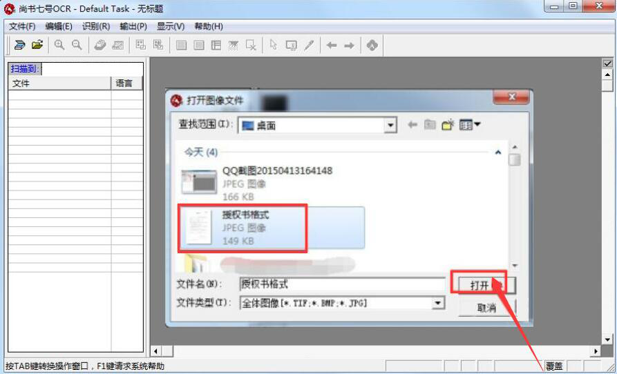 2、选择需要尚书七号OCR识别文字的图片,点击“打开”按钮将它导入。