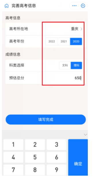 然后点击上方的【设置成绩,获取推荐】,完善高考信息,按照提示进行操作,点击确定,