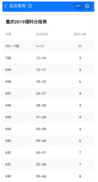 可以看到当前分数在当地的排名情况和其他分数各阶段的排名。
