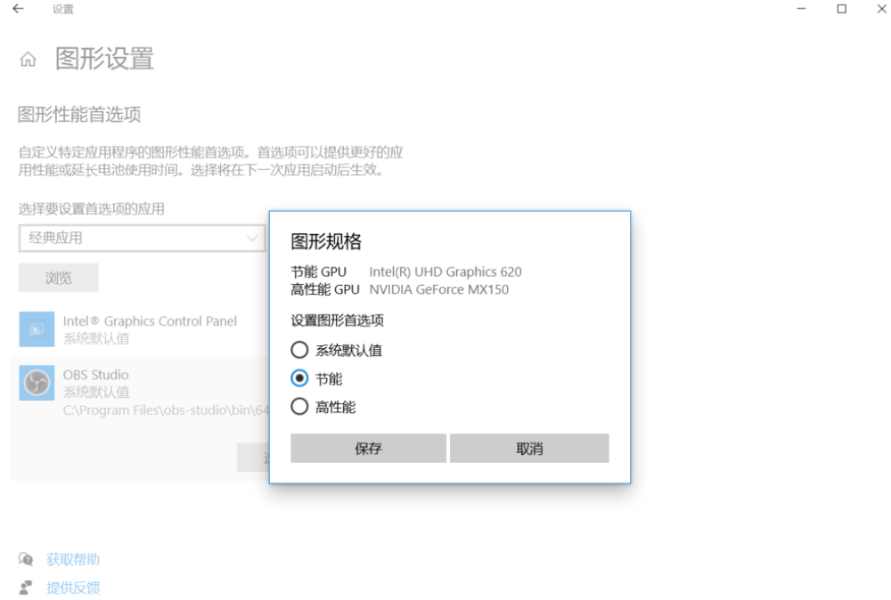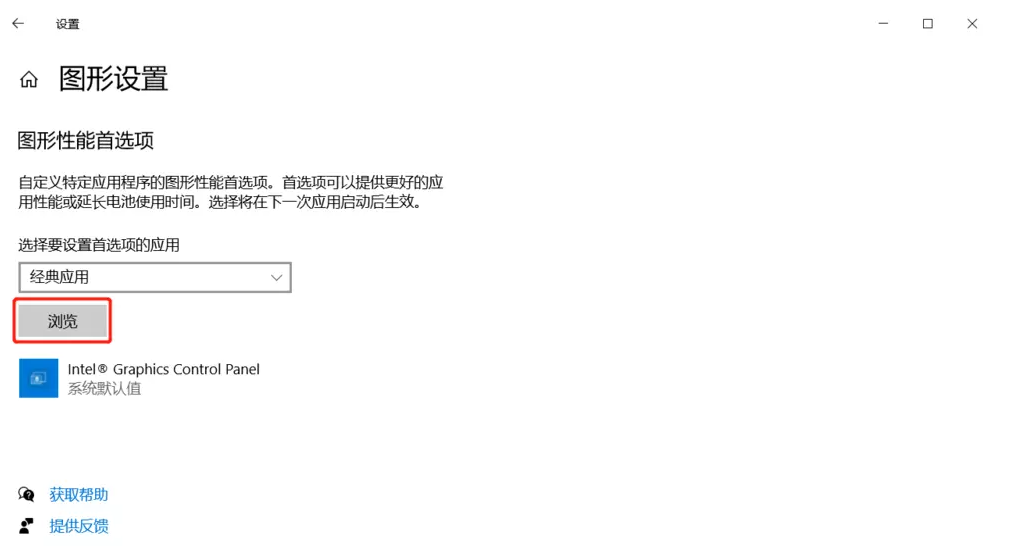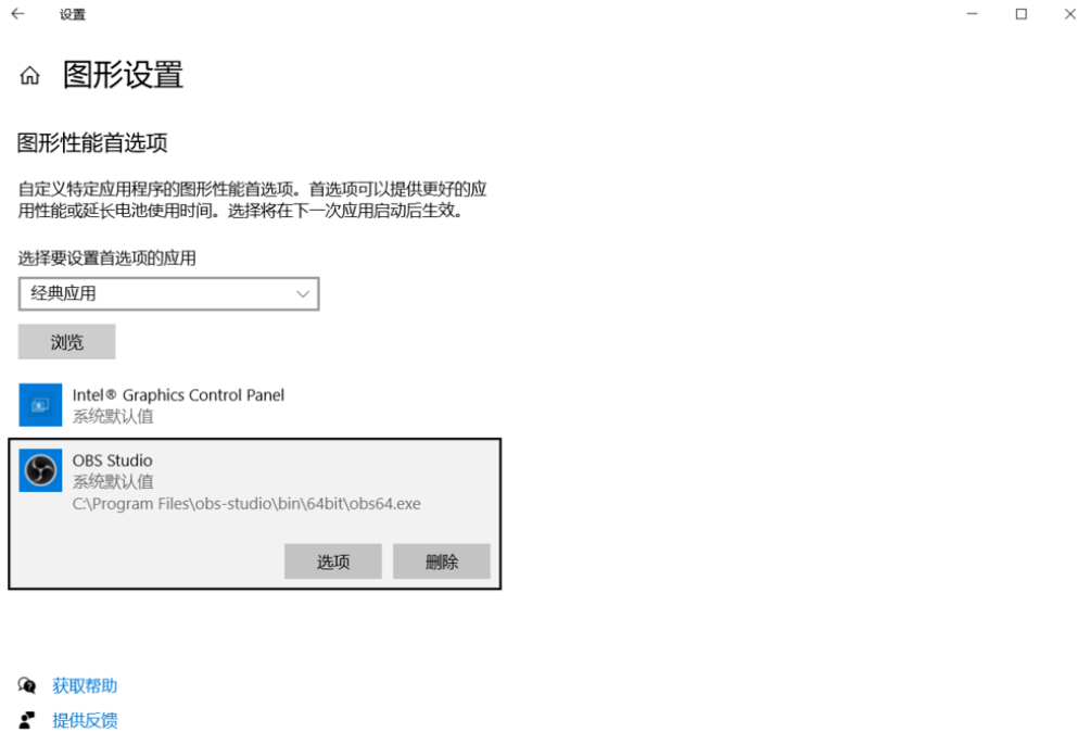 进入图形设置窗口,如图,点击【浏览】,找到OBS软件安装位置,选择OBS64.exe文件;