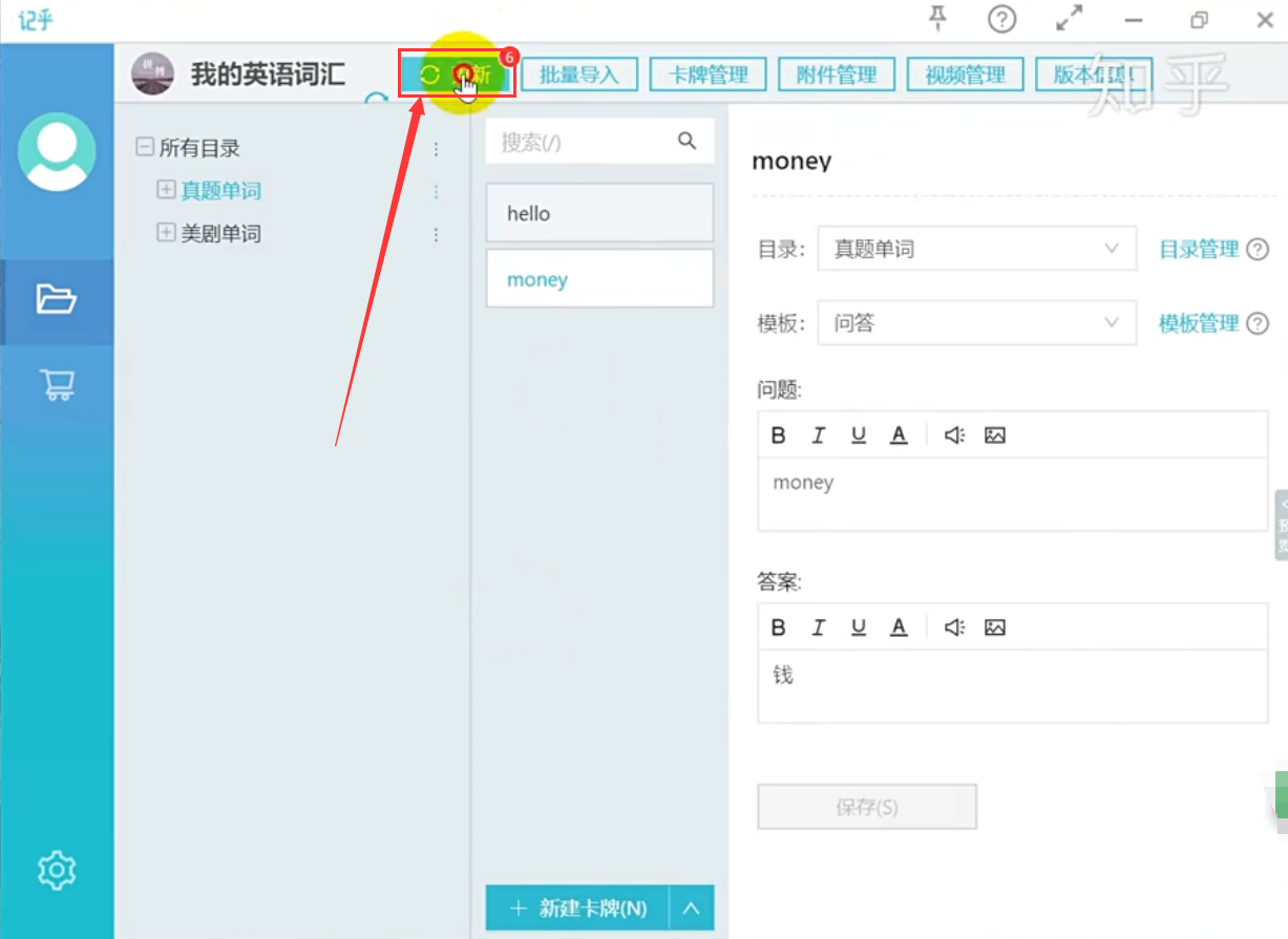 1、首先我们在电脑端记乎卡编器上新建一个单词卡牌“HELLO”。该单词所在目录,上传之后位置会与手机APP端目录相同。