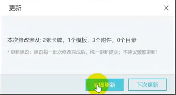 5、卡牌添加之后,单击【更新】,将卡牌信息到手机上。