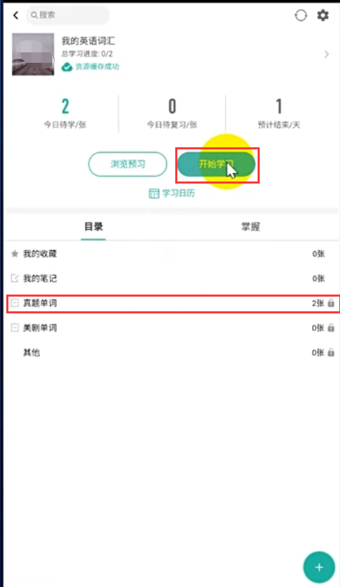 9、回到原界面,点击【开始学习】,你就可以听到单词自动播放语音了!