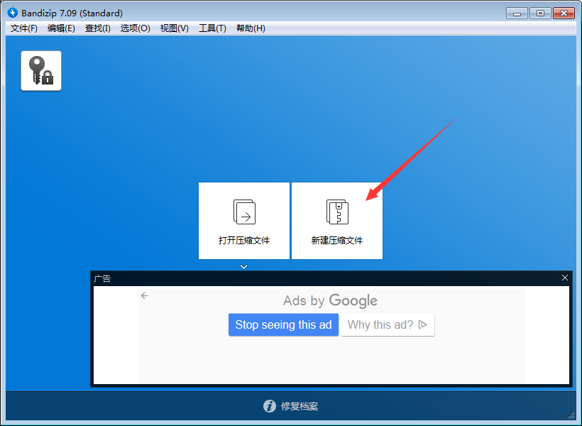 2、打开BandiZip软件,点击【新建压缩文件】。