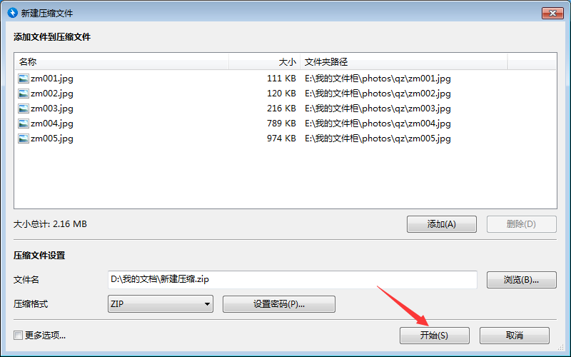 8、所有设置完成,点击【开始】,即可压缩文件。