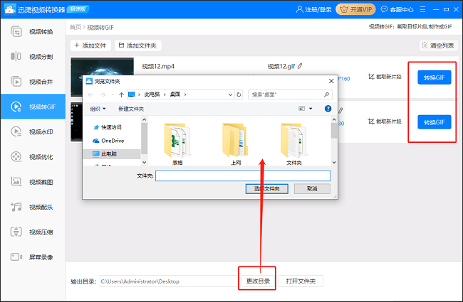 返回主页面,点击下方【更改目录】,设置文件输出保存路径,最后点击【转换GIF】,软件就可以将视频制作成GIF动图。