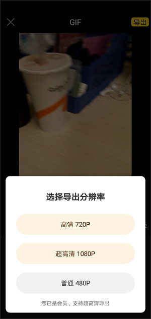 最后点击【导出】,选择高清、超高清、普通这三种分辨率,即可完成视频转GIF的操作。