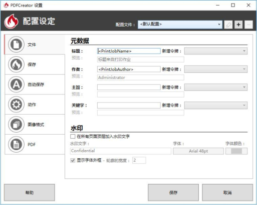 2、进入“配置设定”界面,点击“配置文件”后的方框,在其下拉列表中选择保存文件格式,其中包含了PDF和多种图片格式,选择合适的配置文件点击【保存】。