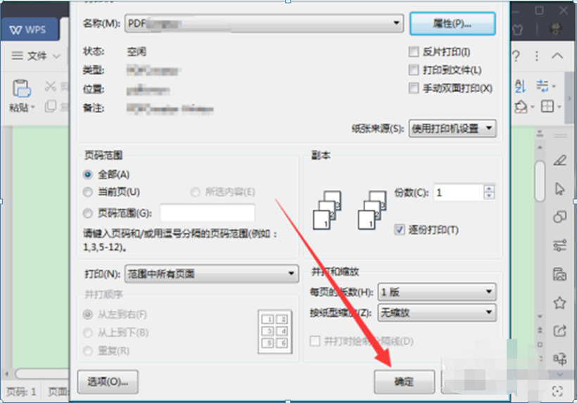 8、返回打印窗口,设置其他常用选项,然后点击【确定】,即可完成虚拟打印输出PDF文件。