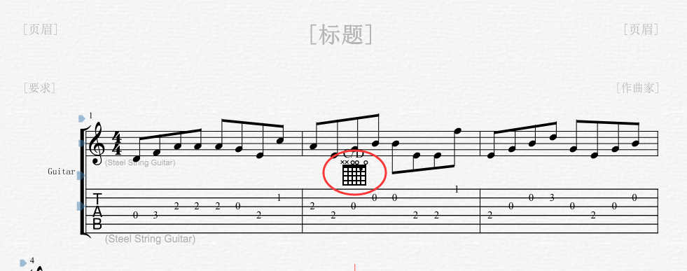 6、由于和弦添加原因导致布局拥挤的话,可以调整六线谱与和弦图标之前间距,在曲谱中直接选中拖动即可。